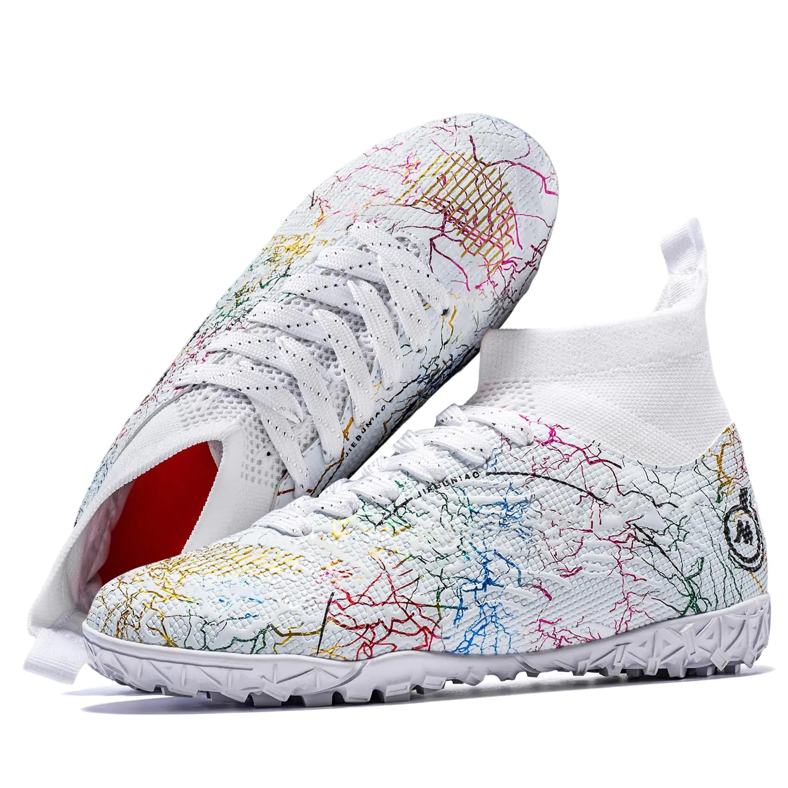 [These football shoes are suitable for many occassionstrainingsportsoutdoorindoorcompetitionsoftfirm groundhard groundartificial groundrubber playground stadium and more. perfect choice for soccer players of all levels and for different playing environments. The soccer cleat boast PU upper that is both soft breathable and resistant to folding The soccer boots with high elastic shock absorption making them perfect for a variety of playing fields. The soccer sneakers boots designed with a knitted sock and high-top elastic shoe mouth these shoes provide ample support for the ankle reducing the risk of injury during sports activities and improving both safety and comfort. "The soccer shoes cleat adopt the textured shoelace design allows for easy adjustment of the shoes tightness enhanced overall wearing experienceeasy to put on and take off." The soccer boots sneakers with non-slip rubber sole these soccer cleats provide superior grip and stability even on hard natural surfacesallows you to better control the ball on the football field.]